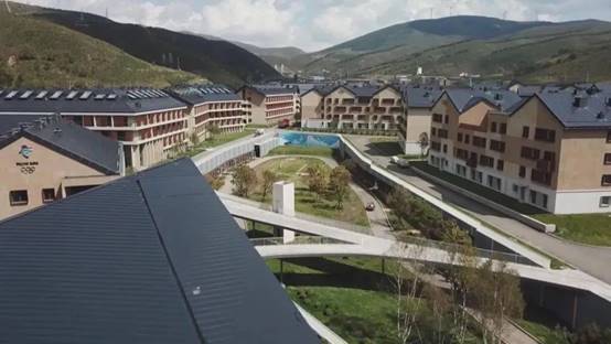 奥运村的场地西低东高,西边最低海拔1576米,东边最高海拔1602米,场地逐渐缓慢抬升,有助于奥运村打造赛事无障碍通行的环境。奥运村不仅体现了中国传统建筑的特点,作为张家口赛区规模最大的场馆,它更大的特点在于绿色和节能降耗。