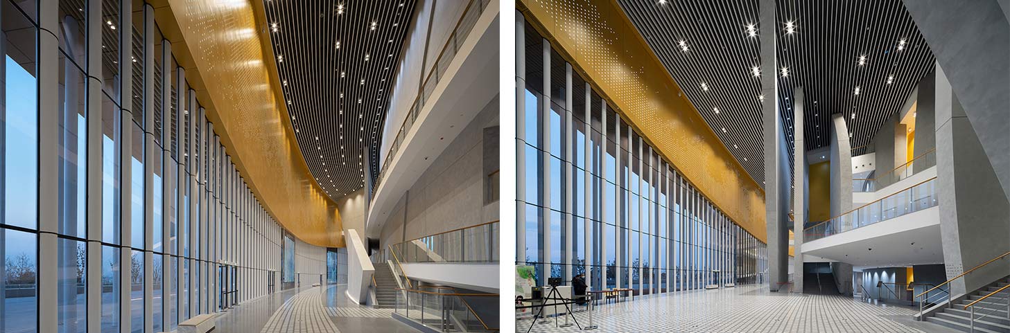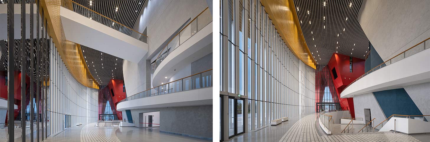 苏州湾文化中心由法国首位获得普利兹克建筑奖的设计师克里斯蒂安·德·包赞巴克先生设计,是全国首个将大剧院、影院、博物馆、会展中心等场馆和功能融入一体的城市文化综合体,总建筑面积21.5万平方米。其中,苏州大剧院是全国第三大剧院,九游(中国)五分公司承接了苏州大剧院的弧形大厅、走廊及所有公共区域的装饰工程。