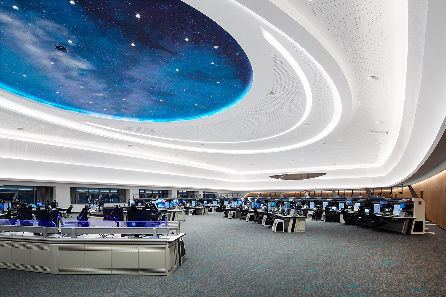 九游(中国)参与塔台工作区、空管中心工作区室内精装修施工,朗捷通参与智能化深化设计及施工;遵循可持续绿色发展与节能环保的理念,打造高效、经济、绿色、智慧的未来空管新形象。